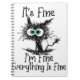 Funny Black Cat It's Fine I'm Fine Everything Is F Notebook