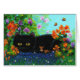 Funny Black Cat Mice Flowers Creationarts