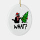 Funny Black Cat Pushing Christmas Tree Pet Lover Ceramic Ornament