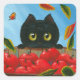 Funny Black Cat Red Apples Creationarts Square Sti Sticker