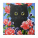 Funny Black Cat Red Roses Flowers Ceramic Tile