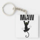 Funny Black Cat Scratching "MIAW" Graphic Square Key Ring