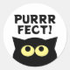 Funny black cat stickers with custom quotes. Cute design with cartoon kitty and humourous quote. Purrrfect! Fun stickers for animal lover, cat owner, cat person, cat mum, pet lover etc. Funny cat silhouette with big yellow eyes.