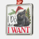 FUNNY BLACK CHRISTMAS CAT WITH TREE METAL ORNAMENT