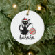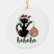 Funny Black Christmas Light Cat HoHoHo Ceramic Ornament
