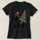 Funny Black Cute Cat Pushing Christmas Tree Over C T-Shirt