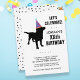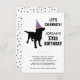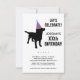 The perfect Birthday party invitation for dog lovers featuring a black lab dog wearing a festive party hat - just add your details to personalise. Easily change the background colour by clicking customise and scrolling down to the colour picker. Works well for kids and adults birthday parties.