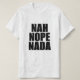 Funny saying No Nope Nada T-shirt in bold black typography..