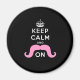Funny Black, Pink Keep Calm and Moustache On Magnet