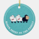 Funny Black Sheep of the Family Blue Ceramic Ornament. Funny Black Sheep with 2 white sheep and one black sheep headed in a different direction.