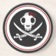 Funny Black White Jolly Kitty Pirate Skull Bones Coaster