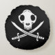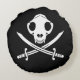 Funny Black White Jolly Kitty Pirate Skull Bones Round Cushion