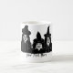 The three funny witches on the front of this cool magic halloween mug is an original and unique, ink drawing. The spooky witches all have an original appearance but all have funny scary expressions. The originality of these fun halloween characters makes them really stand out because they are so different from any other witch illustration. The black witches on this cool mug have a customizable text below them so you can personalize the magic mug with your own text.
