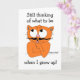 This funny greeting card features cartoon moustache cat Señor Gato™ in a very thoughtful pose along with the saying "Still thinking of what to be when I grow up!" Card is blank inside to write your own message!