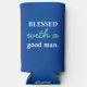 Funny "Blessed With A Good Man" Blue & White Seltzer Can Cooler