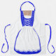 Fun apron done with graphics of a German blue and white dirndl dress, the traditional dress for Austria, Switzerland and Germany. Great for a hostess at an Oktoberfest party.