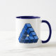 Drink your give coffee from this classic combo mug with this cool impossible triangle construction. The colours are blues and black.
