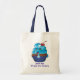 canvas tote bags with image of cute blue cupcake with cherry on top and tongue licking melted cake
