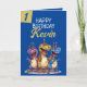 Funny Blue & Green Candle Trex Boy 1st Birthday Card