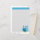 Custom stationery sheets with a cute blue owl and personalised with your name or text at the bottom.