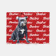 Your dog deserves a blanket of their own, especially with their name and breed on it. Fun throw to warm the season by the fireside or tossed over the sofa. A Bluenose Pit Bull dog in Santa hat, with the dog's name patterned on a red background. TIP: Choose Personalise to change the background colour to one which matches your decor if you like.