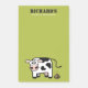 A funny animal themed sticky note pad featuring an embarrassed pooping black and white cow on a green background. Oops I Pooped! Personalise with your own name. Perfect for him with a sense of humour. Design copyright © Lisa Marie Robinson. All rights reserved.