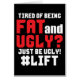 Great for enthusiasts of lifting weights, strength training, the gym wod, bodybuilding, fitness, exercise, weightlifting, powerlifting, strongman, etc. Tired Of Being Fat And Ugly? Just Be Ugly! Lift.