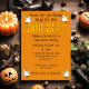 These invitations feature the funny headline "Come for the Candy Stay for the Boo Bees" along with illustrations of "boo bees" that is bees dressed up in ghost costumes. The rest of the text on this invite is ready to be customised with your custom party details. Dark brown text is set against an orange background for a fun Halloween look with a coordinating brown and orange pattern on the reverse side.