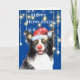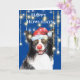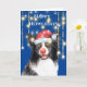 Funny border collie in lights with red Santa hat Card