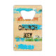 Bottle opener that says “Church Key” on weathered beachy art