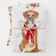Funny Boxer Christmas Dog and Holiday Plaid Wrapping Paper Sheet