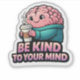 Self-care starts here! This high-detail comic brain in a cosy sweater holding coffee is the perfect "Be Kind to Your Mind" sticker for office workers and students. A funny and supportive vinyl decal for your laptop or workspace.
