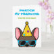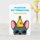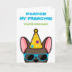 If you know someone who loves french bulldogs and has a good sense of humour, this funny frenchie birthday card is ideal for sending to them on their special day. The design features a cartoon-style illustration of a brown coloured french bulldog wearing a party hat and sunglasses with the wording "Pardon my frenchie! You're how old?" written on the front. This design is also available with different coloured french bulldogs.