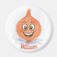 A cute fridge magnet highlighting an onion drawing with a funny laughing face. A matching name template is featured on the bottom of the background. For education purpose you can also replace the name with the word "onion" or remove the text altogether.