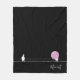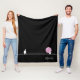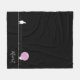 Quirky pigeon fleece blanket featuring two funny birds on a wire stuck with wads of chewed bubblegum. One bird blowing a big pink bubble, another bird stepping in gum. Use the easy text template to add a name, monogram, initials, or funny saying. Edit to change the black background to any colour you wish. ♡ Idyllfire