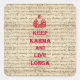 Funny humourous take on the popular "keep calm" slogan with a Buddhist theme. "Keep Karma and Live Longa" red text on an antique vintage Buddha book illustration on a vintage paper background.