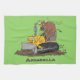 This bull is doing his own earth moving, driving a bulldozer in fun cartoon style.