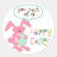 These cute stickers feature a bright pink bunny rabbit holding a teal green striped Easter egg. Above the bunny is a talk bubble that says You Crack Me Up. At the right side is colourful stylised text that says Happy Easter. Be sure to see the matching Easter products in our store. *Clip art used in this design is copyrighted by Encore Software, Inc., which permits use to its licensors. All rights reserved.