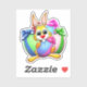 Funny and Cute Easter Bunny Cartoon Character biting a decorated Egg. Original Digital Art Copyright BluedarkArt.
