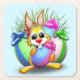 Funny Bunny biting an Easter Egg Square Paper Coaster
