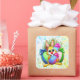 Funny and Cute Easter Bunny Cartoon Character biting a decorated Egg. Original Digital Art Copyright BluedarkArt.