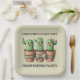 Let one and all know that you have a weakness for (even the prickliest) green growing things with these whimsical paper plates, which feature AI-generated artwork of cute potted baby cactuses rendered in soft pastel tones. Customise top and bottom messages as desired. A great gift idea for gardeners and horticulturists!
