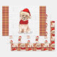 An adorable Cairn Terrier dog is ready for the holiday season with Santa hat and a red winter scarf. This cute Christmas dog is paired with a red and gold holiday plaid on this set of gift wrap for the dog lover.