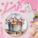 A whimsical watercolor illustration of red crawfish wearing black graduation caps emerging from a steaming silver cooking pot. The crawfish are rendered in bright red with detailed claws and antennae, each wearing a small black graduation cap with tassels. The pot sits on a wooden stump with visible rings and a warm brown color. Steam rises from the pot in wispy gray clouds. The pot has two handles on either side and sits on a light wooden surface. The illustration has a soft, painterly quality with visible brush strokes, particularly in the water and steam. The background is minimal, focusing attention on the main elements of the crawfish and pot. The crawfish are arranged in a curved pattern around the pot's rim, with their claws raised and antennae swaying in the steam.
