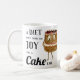 'A Diet can't bring you Joy like a Cake can' funny baking quote. A fun diet verses cake truth with a Black Forest gateau illustration. This funny cooking and anti dieting mug is the ideal quirky gift for cake lovers and those that live to bake. Original artwork and slogan by artist Catherine Sweetman