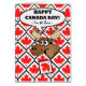 A funny moose breaks through a wall of maple leaf tiles on the cover of this Canada Day greeting card. Happy Canada Day! For the Boss text on the cover. Bold contemporary design in red, white, black, and browns.