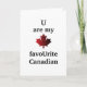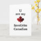 Oh, Canadians and their U's! This funny joke card is the perfect modern Valentine for the Canadian in your life. Front bears the declaration "U are my favoUrite Canadian" with an iconic red maple leaf. Inside message reads simply "Happy Valentine's Day" but may be personalized or removed altogether.