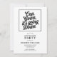This graduation party invitation has great typography! This black and white invite is minimalist and adds a touch of humour! Family and friends will love it! See coordinating items in our shop, Enchanted Finch.