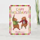 Celebrate the season with a cheerful twist! This festive holiday card features two adorable capybaras dressed in cosy Christmas sweaters—one holding a party hat, the other sipping from a cup—as they dance into the holidays. Set against a soft pink background with a colourful border, the card reads “CAPY HOLIDAYS!” in bright, multicolored letters and includes a personalised signature line from “the Johnsons.”