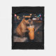 Funny capybara drinking iced coffee lover animal fleece blanket
